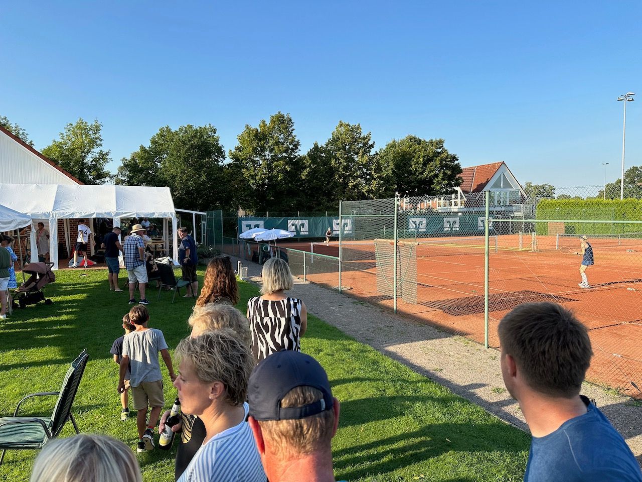 Der Wettergott meinte es sehr gut am Finaltag, dem 9.9.2023; für die Spieler am TCR allerdings viel zu gut, auf jedem Platz stand ein großer Eimer Wasser zur Abkühlung. Die Zuschauer dagegen standen beschattet unter Zelten. Doch es ging um die Vereinsmeister 2023.
