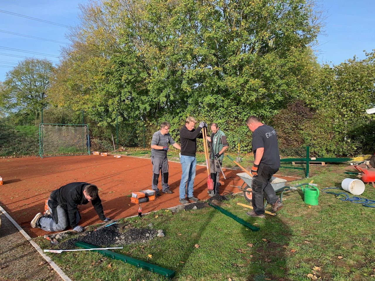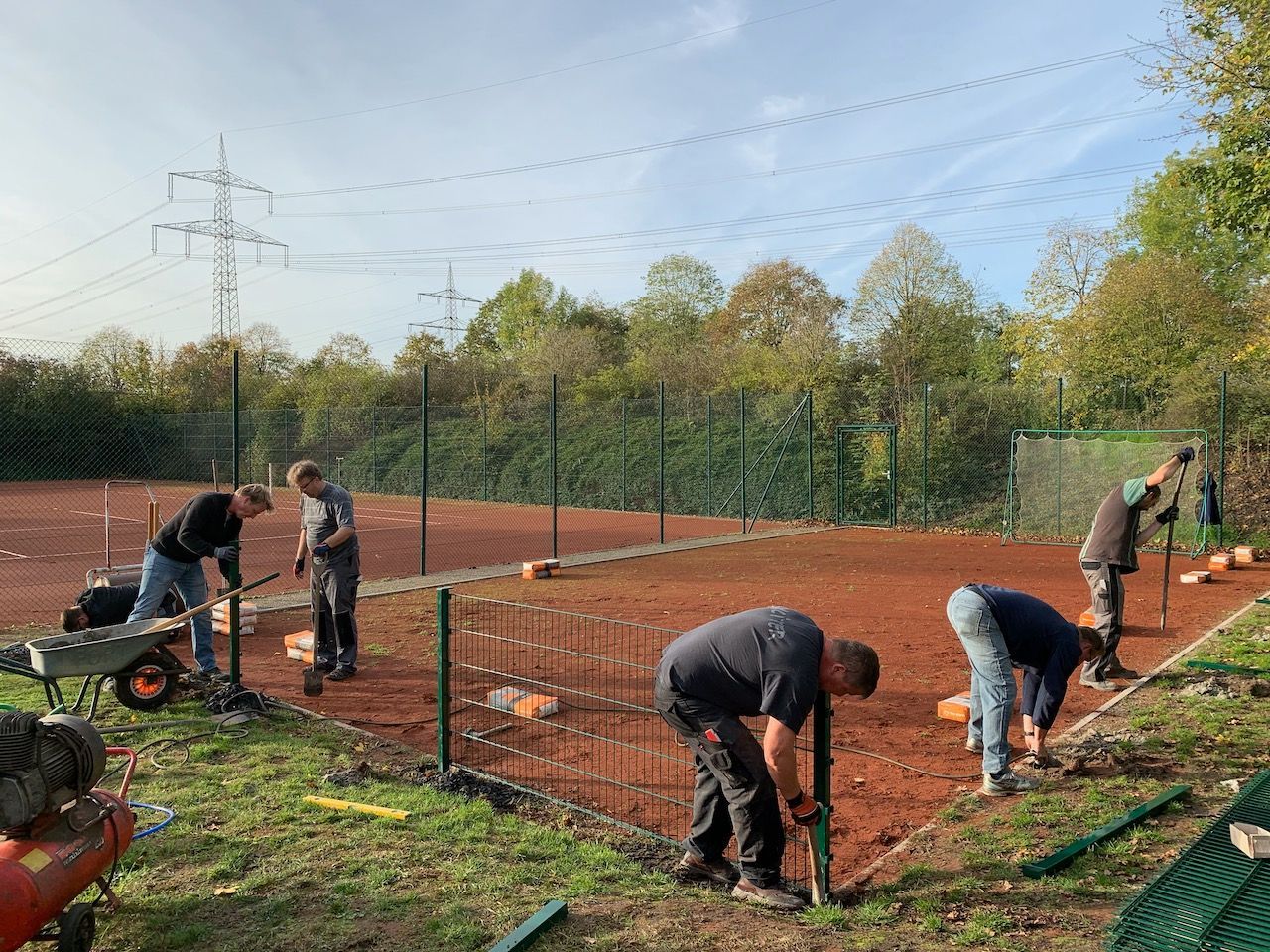 Im Herbst 2019 als die vier „normalen“ Tennisplätze winterfest gemacht wurden, sprich Netze und Sichtbanner entfernt sowie die Linien beschwert, war es auch Zeit, die selbst gestellte Sonderaufgabe zu erfüllen: das in dieser Saison neu errichtete Kleinfeld wurde eingezäunt, so dass ab der nächsten Sommersaison auch dort die Tennisschläger geschwungen werden können. Und so war es dann auch; ab Frühjahr 2020 konnten sich die Kinder und Jugendlichen auf dem Kleinfeld austoben.